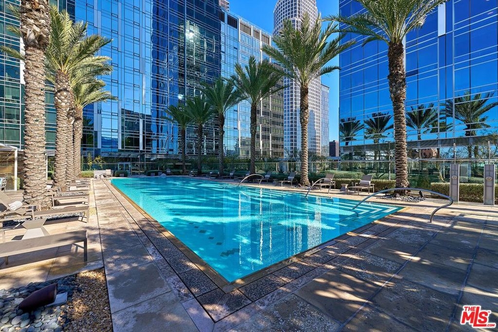 Welcome to Unit #1516, a rare residence at Metropolis Tower 2 featuring a private balcony, perfect for enjoying a breathtaking combination of city skyline views, lush greenery amenities, and stunning sunsets. This beautifully designed 1-bedroom, 1-bathroom home offers refined urban living in one of Downtown Los Angeles' premier high-rise communities.Floor-to-ceiling windows with custom shades fill the home with natural light, complemented by 7.5-inch oak plank flooring and Nest-controlled central A/C and heating. The chef-style kitchen is appointed with Caesarstone countertops and premium Miele appliances, including an in-unit washer and dryer. The spa-inspired bathroom features a custom vanity and a soaking tub with stone surround.Residents enjoy over 1.7 acres of exclusive amenities, including a resort-style pool and hot tub, state-of-the-art fitness center with yoga and cycling rooms, clubhouse, billiards and game rooms, business and conference centers, dog park, and playground. 24-hour lobby security and direct access to Hotel Indigo and Metropole Restaurant enhance the luxury lifestyle.Ideally located with easy access to the 110, 101, and 5 freeways, and surrounded by DTLA's premier dining and entertainment. Additional parking available on a month-to-month basis.A truly special opportunity to own a balcony unit in Metropolis Tower 2 schedule a private showing today.