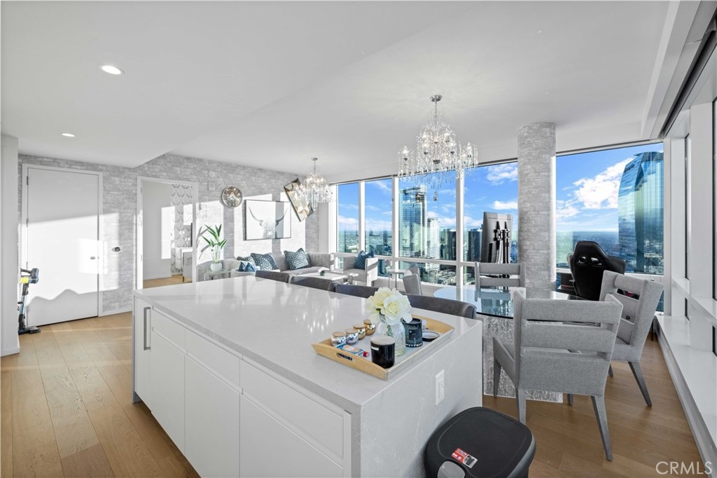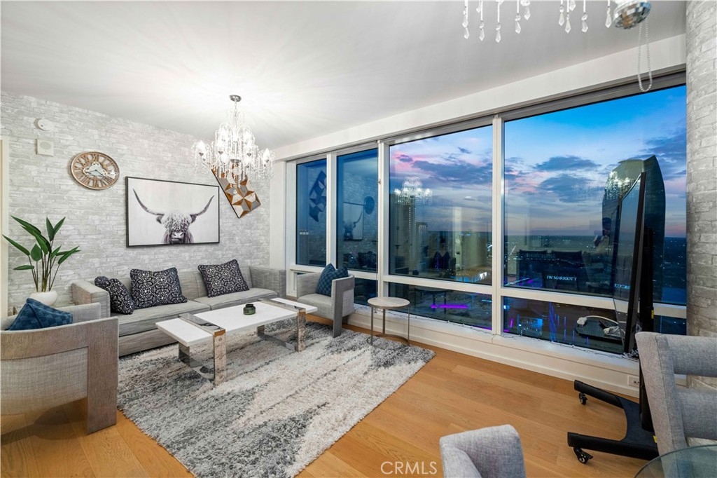 Experience elevated luxury on the 41st floor at Metropolis Tower II. This stunning 2-bedroom, 2-bath corner residence offers sweeping, multi-directional views of the DTLA skyline, Hollywood Hills, and dramatic sunsets through floor to ceiling windows that fill the home with natural light. The open layout features wide plank oak flooring, high ceilings, and a beautifully designed gourmet kitchen with Caesarstone countertops, custom soft close cabinetry, and premium Miele & Bosch appliances. The spacious primary suite includes a walk-in closet and a spa inspired bath with sleek contemporary finishes. Both bedrooms capture breathtaking views. Metropolis offers one of DTLA’s best amenity collections, including a resort-style pool, cabanas, sky garden, fitness & yoga studio, billiards lounge, business center, putting green, children’s play area, dog park, plus 24/7 lobby attendant and concierge. Located steps from Crypto Arena, LA Live, the Financial District, South Park, world-class dining, shopping, and entertainment. Metropolis offers unmatched urban conveniences. Luxury high-rise living at its finest, welcome home to Tower II at Metropolis.