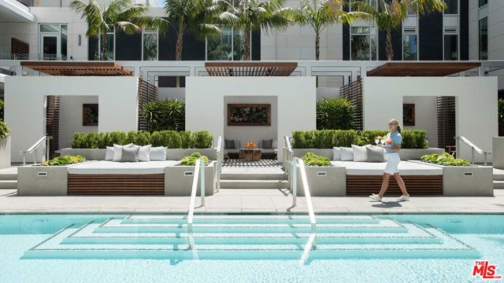 This sophisticated two-story townhouse-style residence spans over 2,300 square feet and offers 2 bedrooms, 3 bathrooms, and seamless indoor-outdoor living. The main level boasts soaring ceilings and expansive windows that flood the open-concept living room and chef's kitchen with natural light. Outfitted with premium appliances from Gaggenau and Miele, the kitchen is designed for both function and elegance. The luxurious primary suite features custom Poliform closets and a spa-inspired bathroom with a soaking tub, oversized shower, and dual vanities. The lower level includes a quiet den or office space, a full bathroom, and direct access to a private two-car subterranean garage with an EV charger, in addition to a third deeded parking spot. Residents enjoy the world-class service and amenities synonymous with the Four Seasons brand, including a 24-hour concierge and valet, a residents-only pool, fitness center designed by Harley Pasternak, IMAX theater, private lounge, and on-site restaurant. Ideally located minutes from the finest dining, shopping, and entertainment in Beverly Hills and West Hollywood.