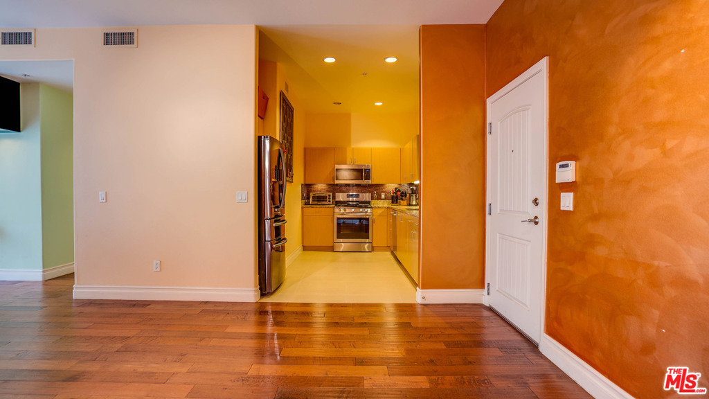 Very conveniently located close to freeway, shopping centers, market, attractions of DTLA & Korea town. This property features 9.5 feet high ceilings, Pre-wired internet, quality hardwood floor with open concept. Granite countertops with square edge detailing in the kitchen and elegant bathtub with complementary ceramic tiles in bathrooms. This unit is located at the 'South-facing', 'End' unit with a good size balcony. Well maintained by HOA management.- Earthquake insurance is included, high qualified security system, Fitness center, lots of guest parking spaces.